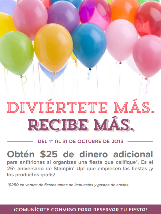 Que les parece este ofertazo!!! A si que acompañenme a celebrar los 25 años de Stampin Up y aprovechemos todas porque si compramos $250 dolares yo no recibimos $40 sino $65!!! y asi sigue creciendo la cuenta.